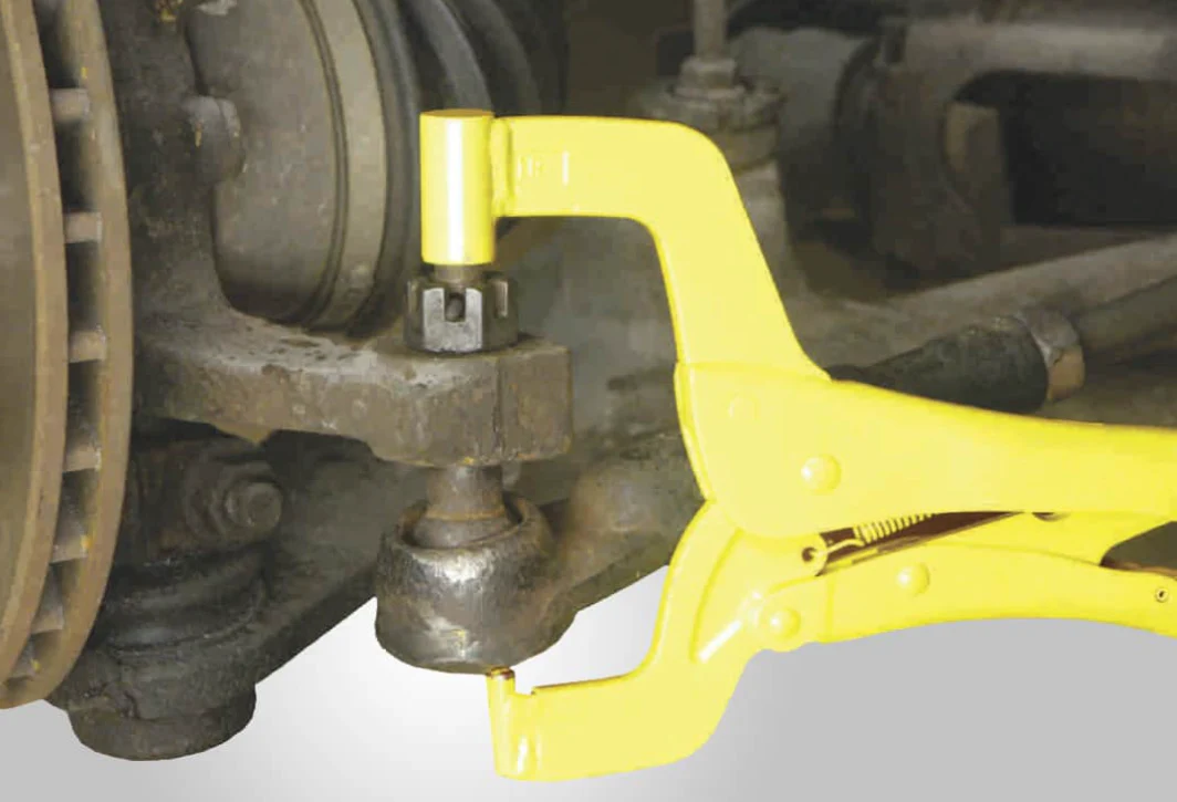 Tough alloy steel C-clamp locking pliers provide a quick temporary* steering repair for vehicles with outer tie rod end ball and socket separation.